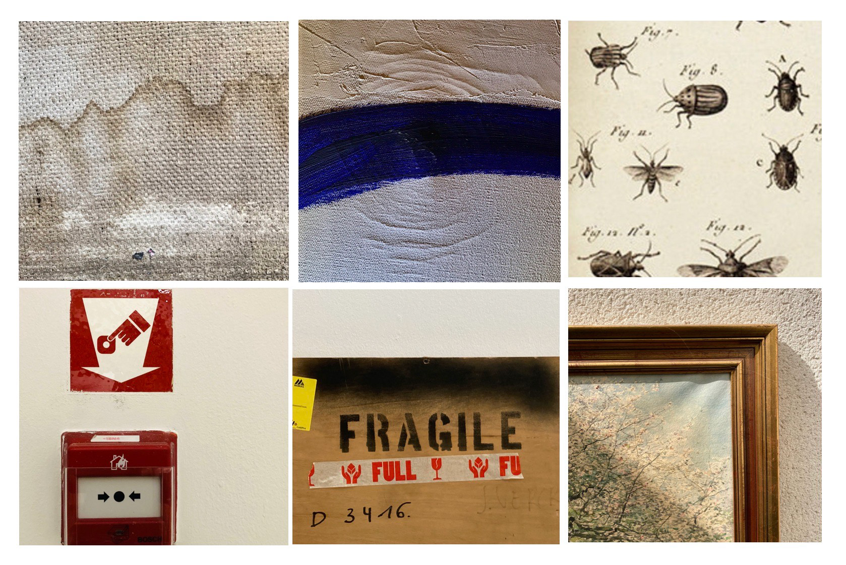 Objects are exposed to a number of possible dangers: Handling can lead to physical danger, light can cause fading and photochemical degradation. Humidity and temperature fluctuations can cause cracking or structural damage, pollution from city, building or even newly constructed exhibit cases can cause damage. Pests can be a threat and objects can also be subjected to accidents like fire or flood, theft and vandalism.
